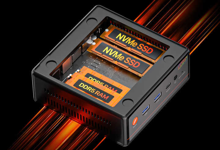 在内存方面,磐镭WO4 7640HS迷你主机支持双通道DDR5内存,最高可扩展至64GB。高频的DDR5内存能够提供更快的数据读写速度,进一步提升系统的整体性能。至于存储方面,主机配备了1个PCIe 4.0 x4 M.2插槽,1个PCIe 3.0 x4 M.2插槽,这意味着用户可以根据自己的需求,灵活选择不同容量的固态硬盘进行搭配。